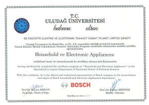 tamamlamıştır. Bu sertifika ile servisimiz, Bosch ev aletlerinin bakım ve onarımında yetkinliğini